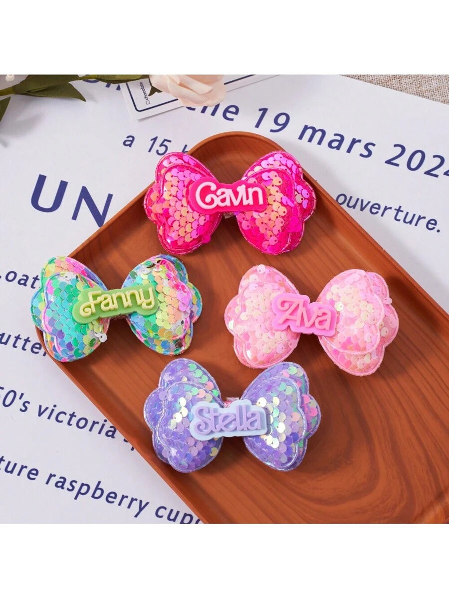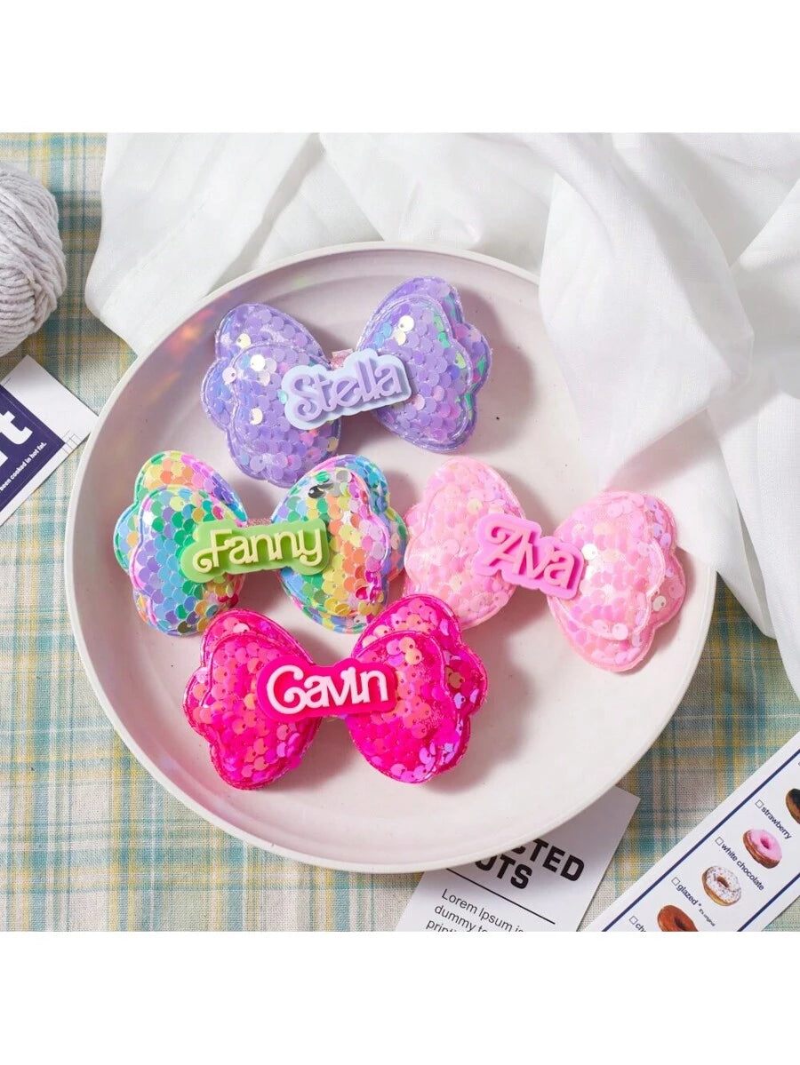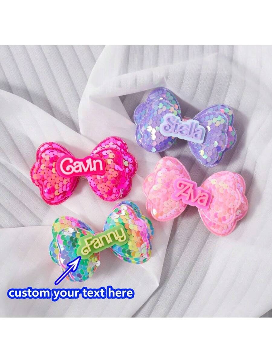 Custom Bow Hair Clip, Glitter Acrylic Hair Accessories