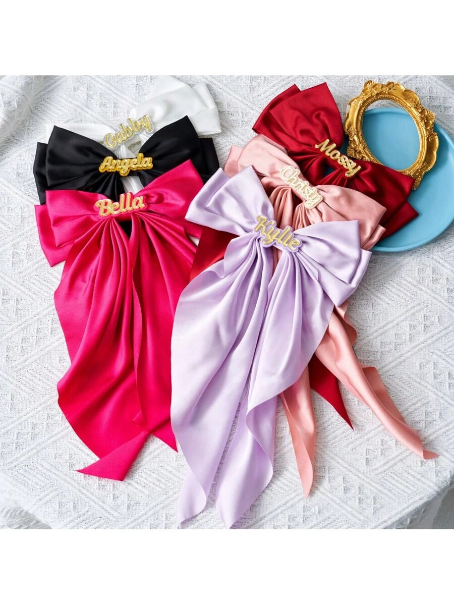 Custom Text Women's Bow Hair Clips, Fashionable Universal Bow Hair Accessories