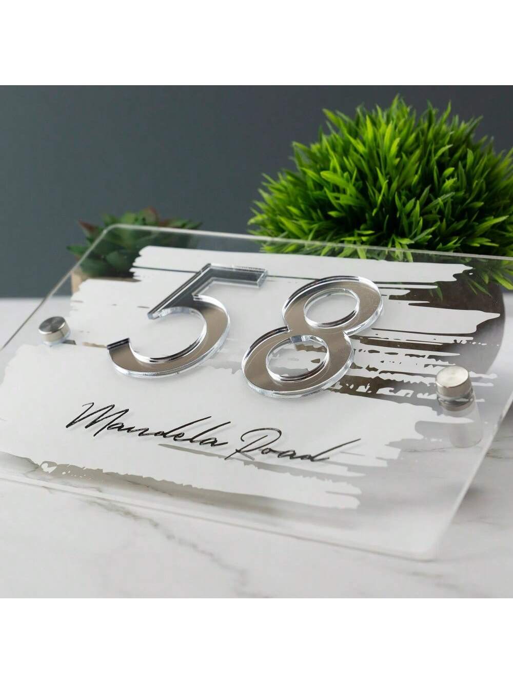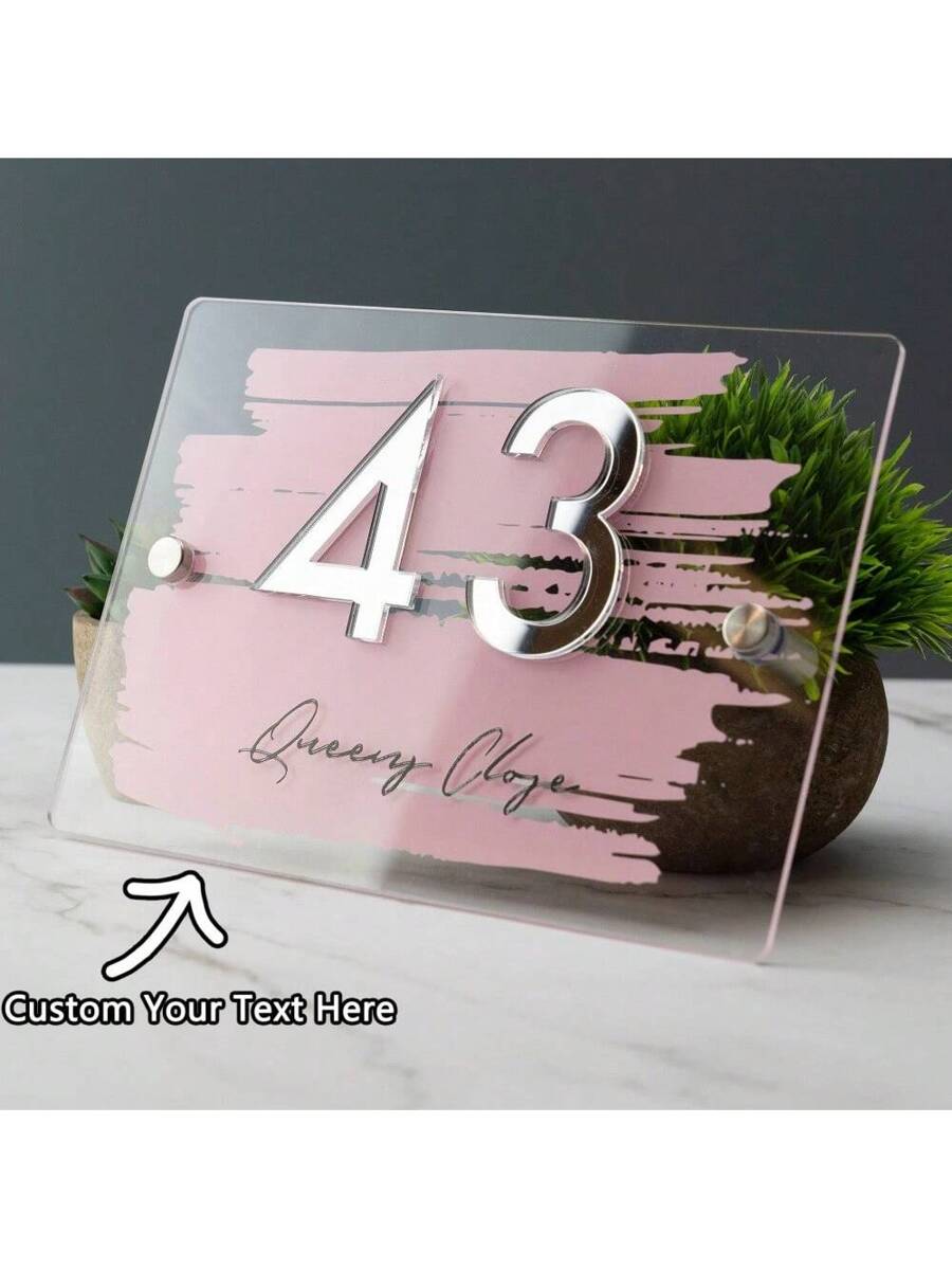 Customized Acrylic Address Plaque - Painted Brush Stroke & Mirror Acrylic