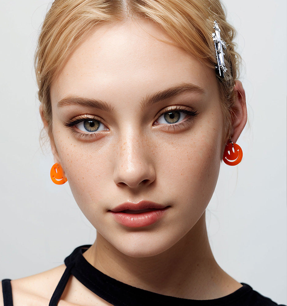 Orange Smiley Emoji Earrings/Ear Clip